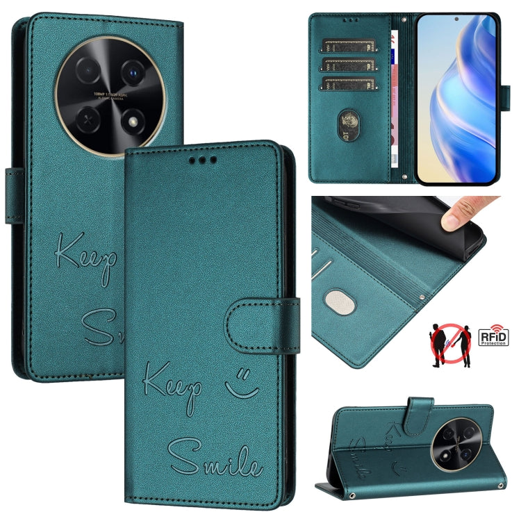 Funda de Cuero con Relieve Rfid para Huawei Nova 12I 4G Global Smile (Verde Pavo Real)