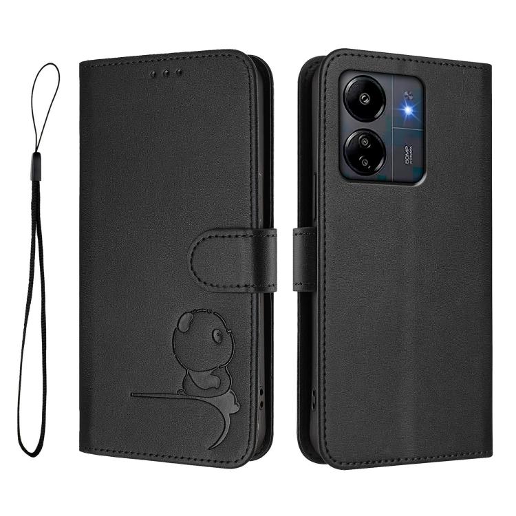 Funda de cuero con relieve RFID y cordón para Redmi 13C 4G / 5G / Poco C65 (negro)