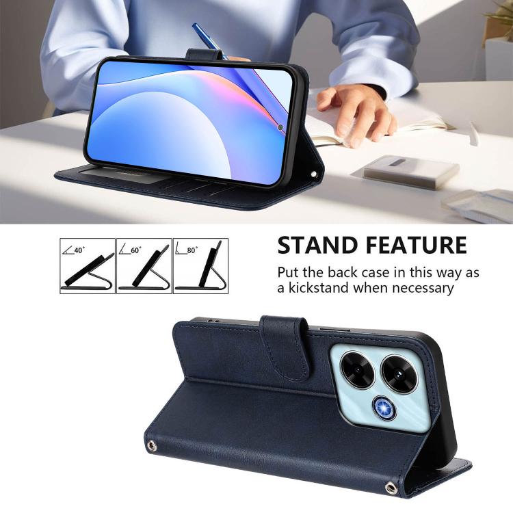 Funda de cuero con relieve RFID y cordón para Redmi 13x / 13 4G / Poco M6 4G (azul)