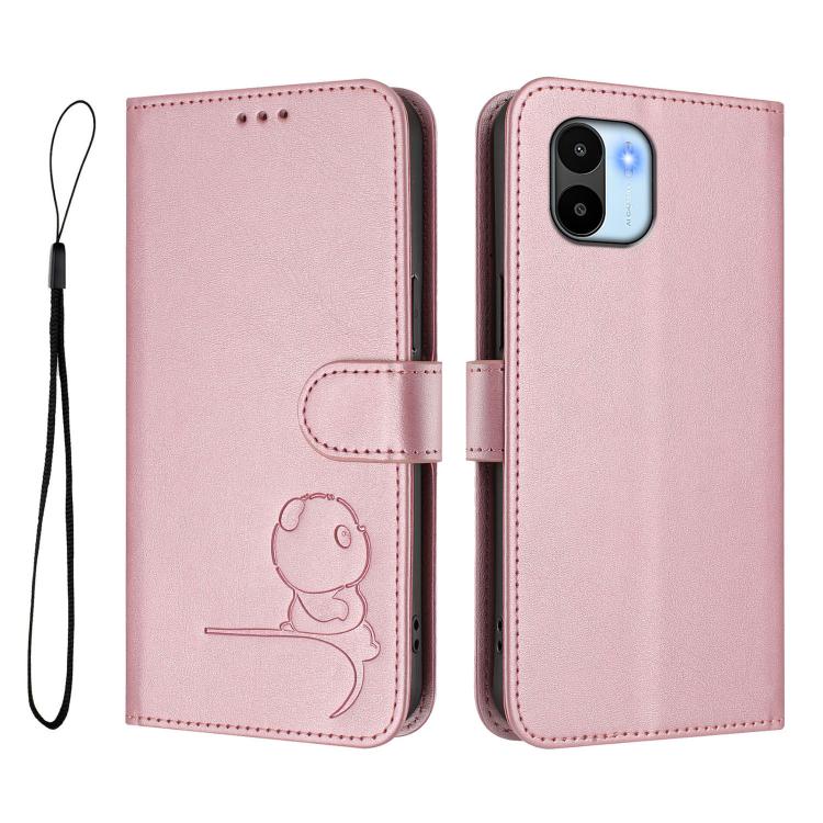 Funda de cuero con relieve RFID y cordón para Redmi A1/A2 4G (rosa)