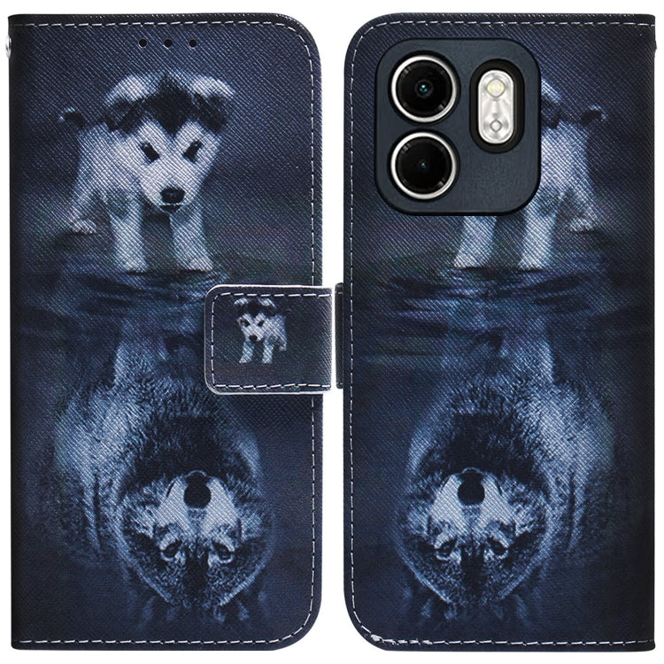 Funda de Cuero con Tapa para Infinix Hot 50I Smart 9 con Dibujo a Color (Lobo y Perro)