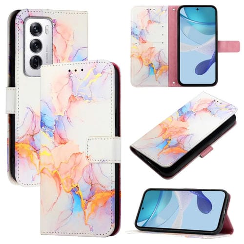 Funda de Cuero con Tapa con Patrón de Mármol para Oppo Reno12 Global Pt003 (Galaxy Marble White)
