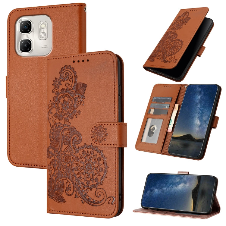 Funda de Cuero con Tapa con Relieve Flor de Datura para Infinix Hot 50I Smart 9 (Marrón)