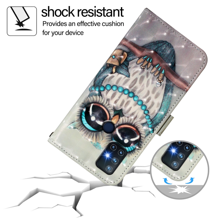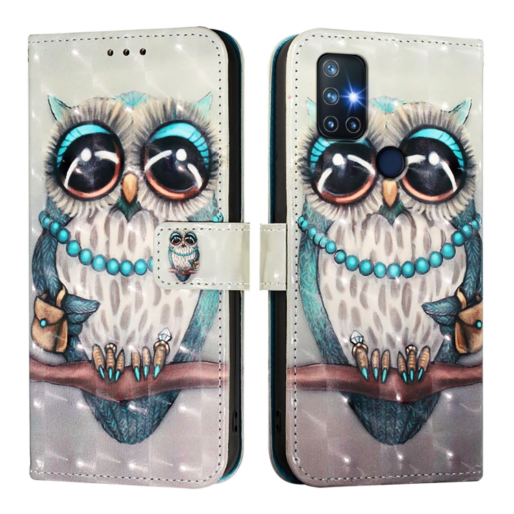 Funda de Cuero con Tapa Horizontal y Pintura 3D para OnePlus Nord N10 5G (Búho Gris)