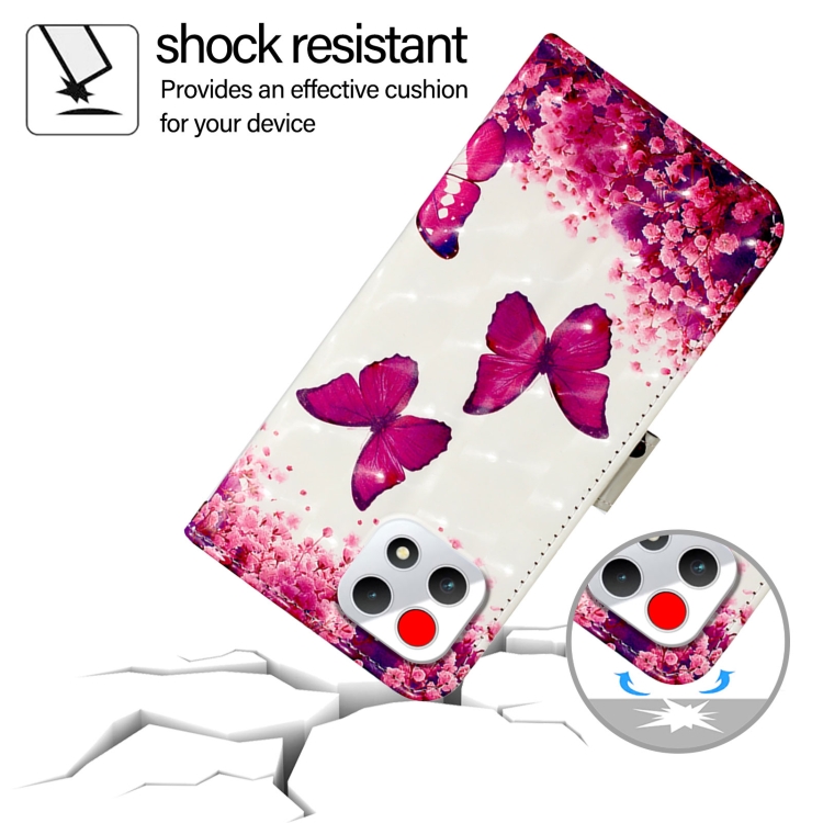 Funda de Cuero con Tapa Horizontal para T-Mobile Revvl 7 con Pintura 3D (Mariposa Rosa)
