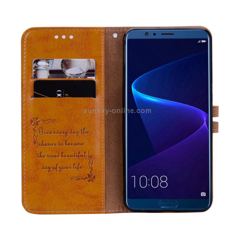 Funda de Cuero con Tapa Horizontal para Huawei Honor 10 con Soporte y Ranuras (Marrón)