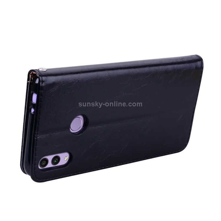Funda de Cuero con Tapa Horizontal para Huawei Honor 8C con Soporte y Ranuras para Tarjetas (Negro)