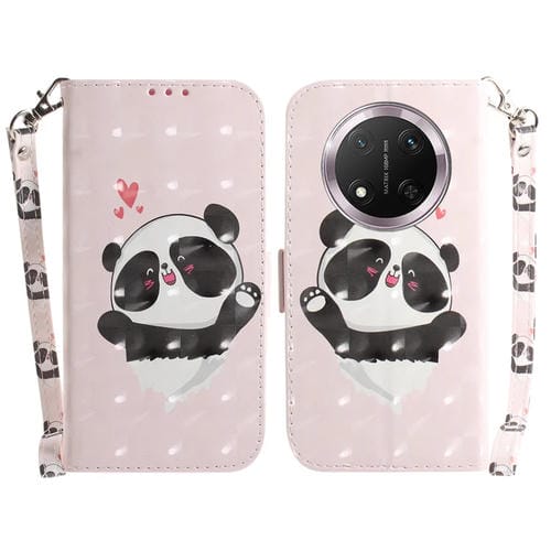 Funda de Cuero con Tapa Horizontal y Diseño 3D para Honor X9C (Panda con Forma de Corazón)