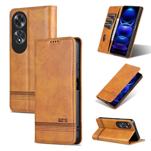 Funda de Cuero con Tapa Magnética con Textura de Piel de Becerro Azns para Oppo A60 4G (Marrón Claro)