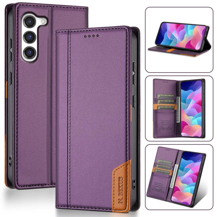 Funda de cuero con tapa magnética y costuras RFID para Samsung Galaxy S23 5G N.BEKUS P3 (morado)