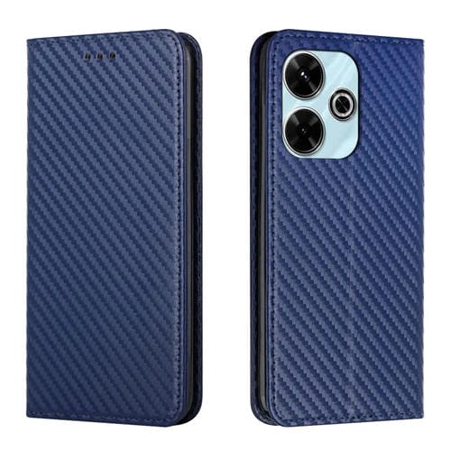 Funda de Cuero con Tapa Magnética y Textura de Fibra de Carbono para Xiaomi Redmi 13 4G (Azul)