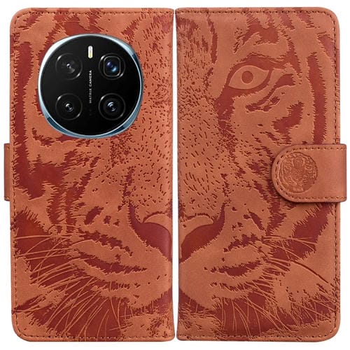 Funda de Cuero con Tapa y Estampado de Tigre para Honor Magic7 Pro (Marrón)