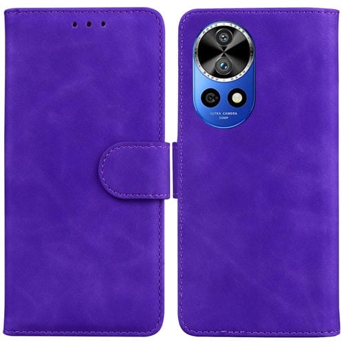 - 1x Funda de Cuero con Tapa para Huawei Nova 12 Pro Skin Feel Pure Color (Morado)
