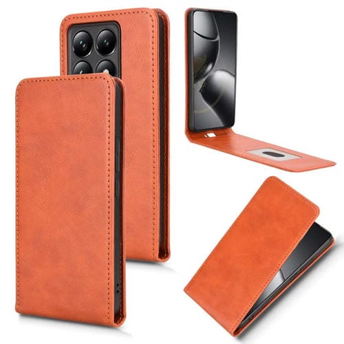 Funda De Cuero Con Tapa Vertical Magnética Para Teléfono Xiaomi 14T (Marrón)
