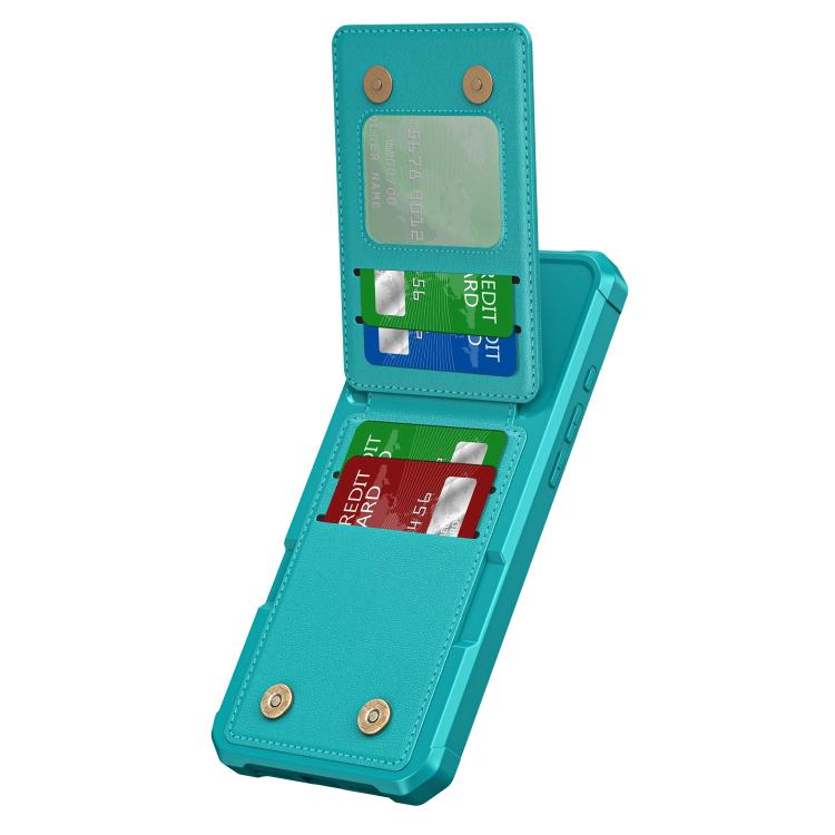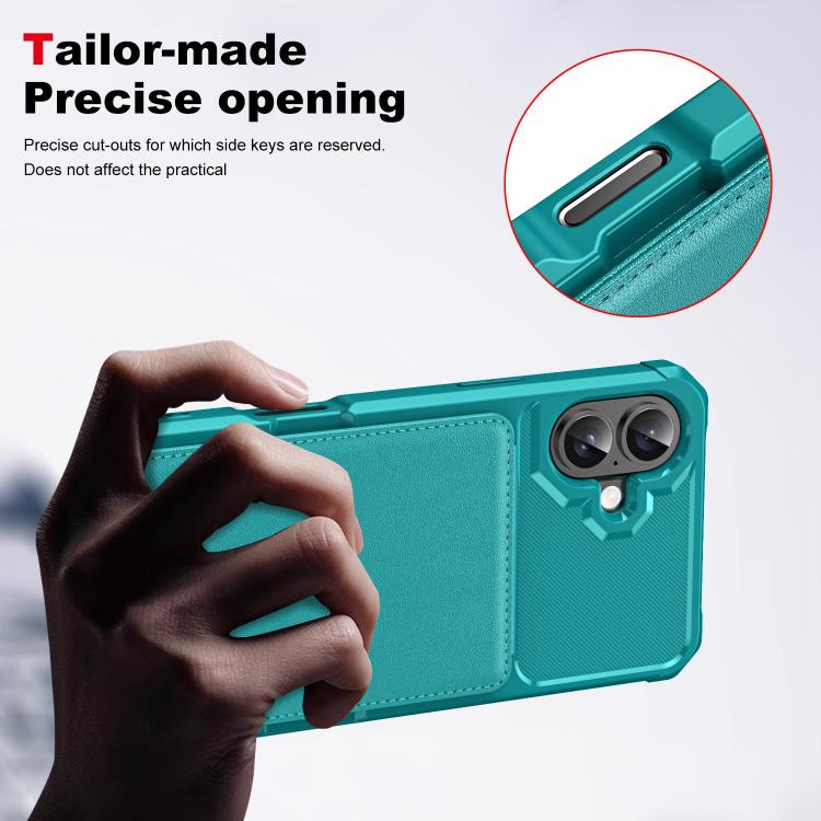 Funda de Cuero con Tapa Vertical para iPhone 16 con Tarjetero (Verde Cian)