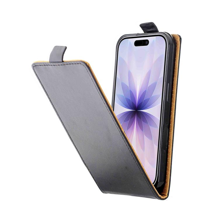 Funda de cuero con tapa vertical para iPhone 17 con ranura para tarjetas (negra)