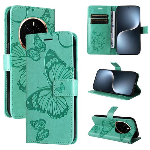 Funda de Cuero con Tapa y Mariposa En Relieve 3D para Honor Magic7 5G (Verde)