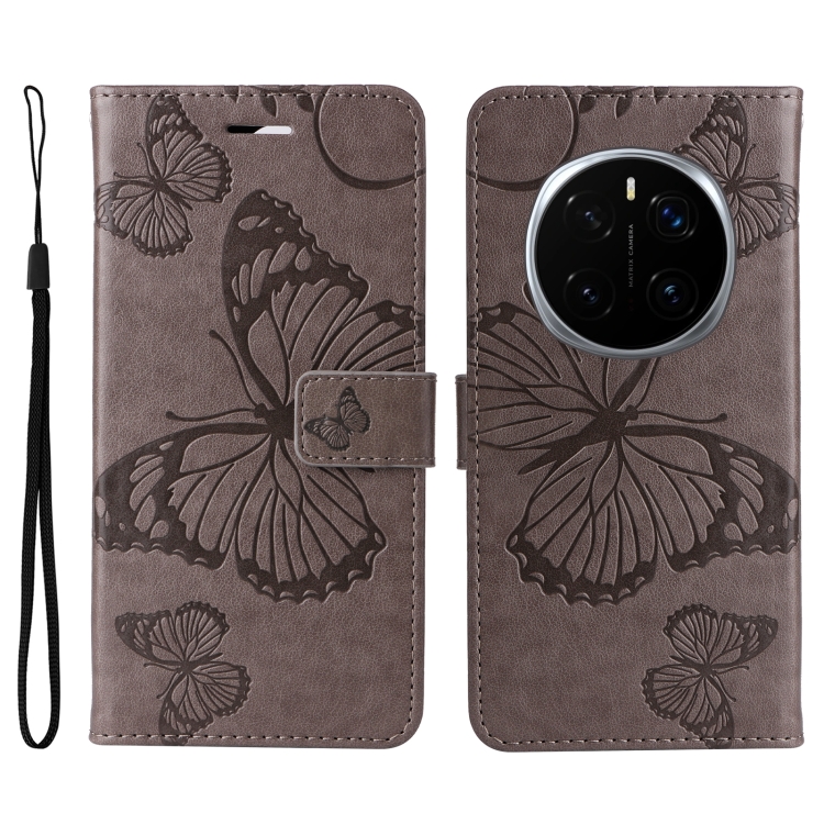 Funda de Cuero con Tapa para Honor Magic7 Pro Diseño Mariposas en Relieve 3D (Gris)