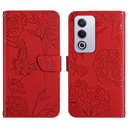 Funda de Cuero con Tapa y Diseño de Mariposas En Relieve para Oppo A80 Eu / A3 Pro Global Ht03 (Rojo)