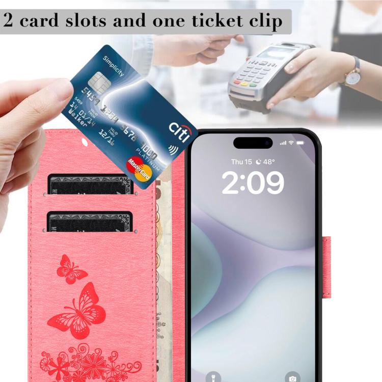Funda de cuero con tapa y diseño de mariposas para iPhone 17 (rosa)