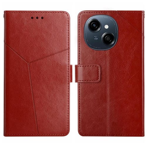 Funda de Cuero con Tapa y Patrón en Forma de Y para Tecno Pop 9 4G / Spark Go 2025 4G (Marrón)