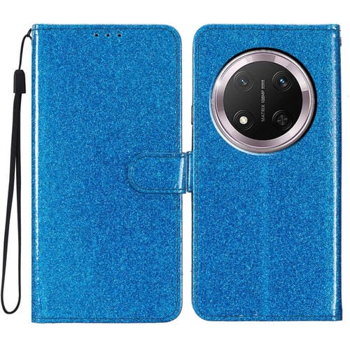 Funda de Cuero con Tapa y Purpurina para Honor X9C 5G (Azul)