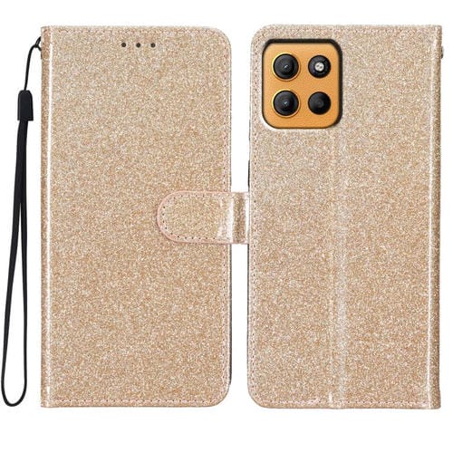 Funda de Cuero con Tapa y Purpurina para Motorola Moto G15 (Dorada)