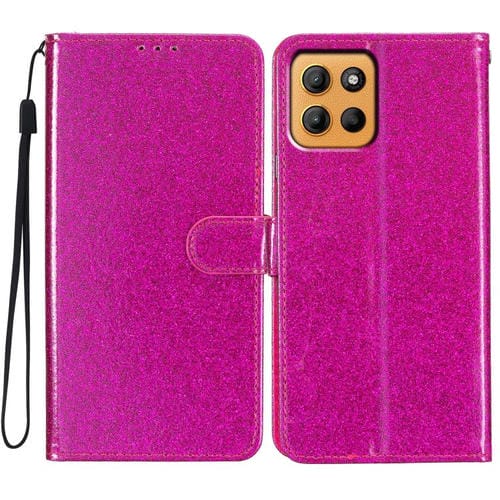 Funda de Cuero con Tapa y Purpurina para Motorola Moto G15 (Rosa y Rojo)