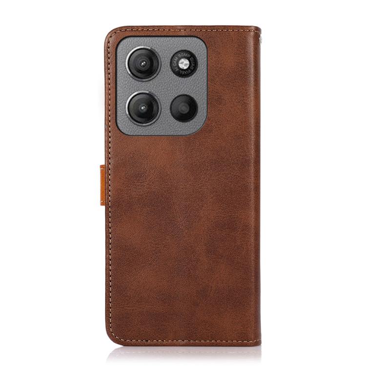 Funda de Cuero con Tapa y Textura Piel de Vaca Motorola Moto G15 4G G05 Khazneh (Marrón)