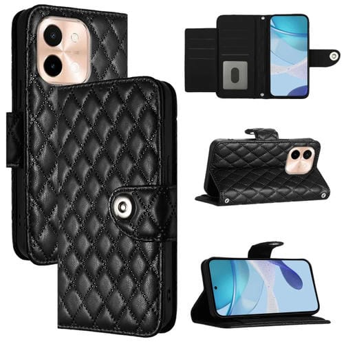 Funda de Cuero con Tapa y Textura Rombal para Vivo Y28 4G con Cordón (Negro)