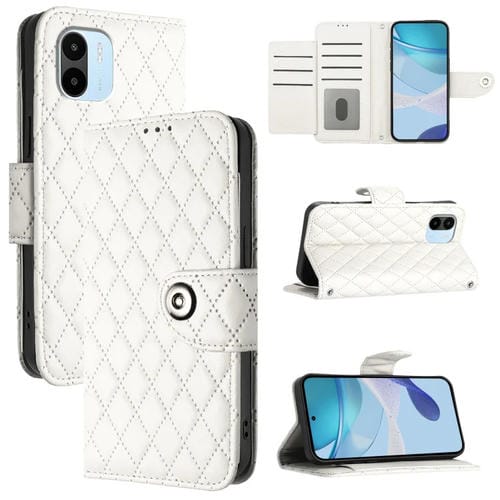 Funda de Cuero con Tapa y Textura Rómbica para Redmi A1/A2 (Blanca)