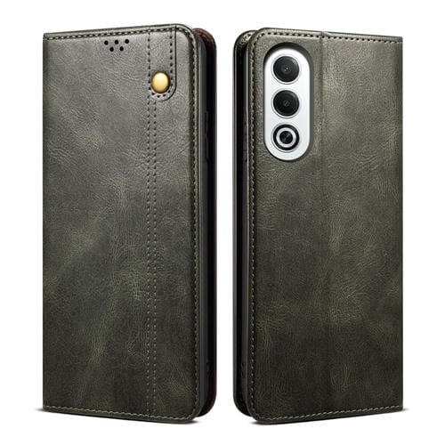 Funda de Cuero con Textura Crazy Horse y Cera de Aceite para Oppo K12X 5G (Verde Oscuro)