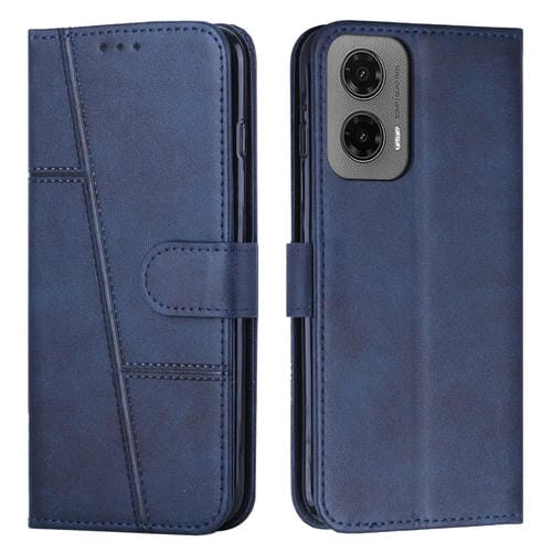 Funda de Cuero con Textura de Becerro y Costuras para Motorola Moto G35 (Azul)