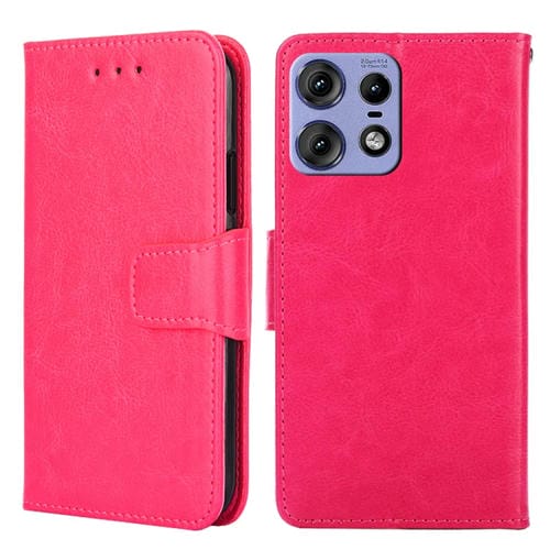 Funda de Cuero con Textura de Cristal para Motorola Edge 50 Pro 5G (Rosa y Rojo)