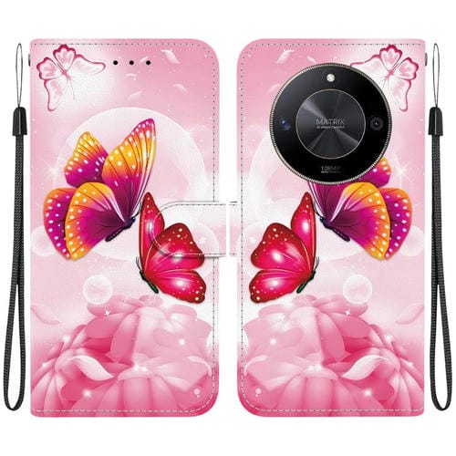 Funda de Cuero con Textura de Cristal y Dibujo para Honor X9B/Magic6 Lite (Mariposas Rosas)