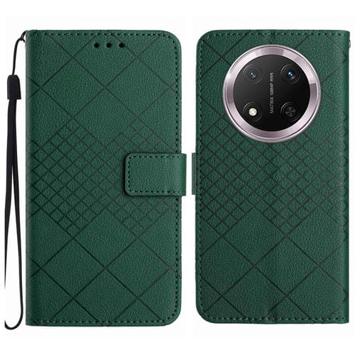 Funda de Cuero para Honor X9C con Textura de Cuadrícula Rómbica (Verde)