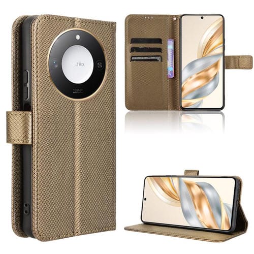 Funda de Cuero con Textura de Diamante Inteligente para Honor X60 5G/X9C (Marrón)