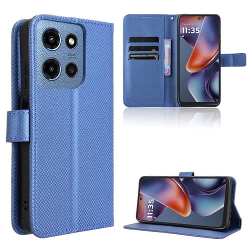 Funda de Cuero con Textura de Diamante para Motorola Moto G Play 2025 (Azul)