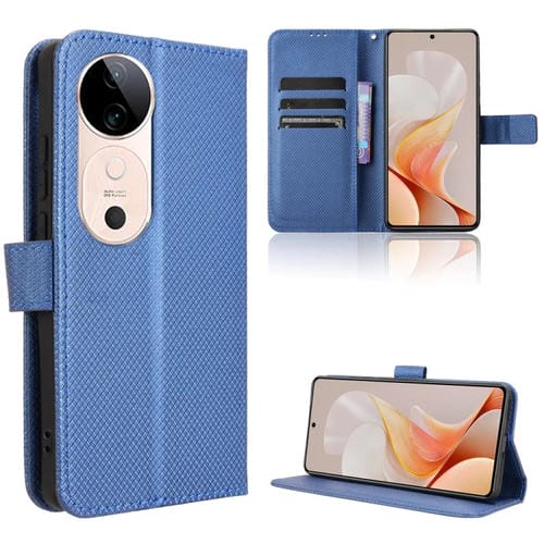 Funda de Cuero con Textura de Diamante para Vivo S19 5G (Azul)