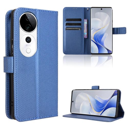 Funda de Cuero con Textura de Diamante para Vivo S19 Pro 5G / V40 5G (Azul)