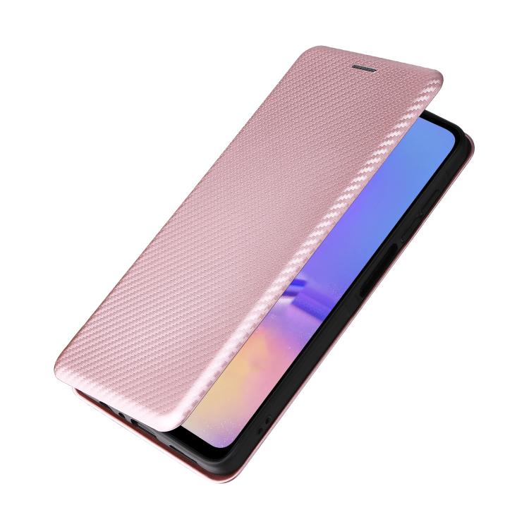 Funda de cuero con textura de fibra de carbono para Samsung Galaxy A07 4G (rosa)