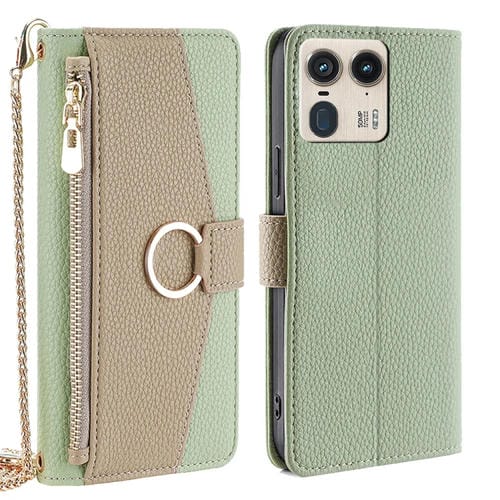 Funda Cruzada de Cuero con Textura de Lichi para Motorola Edge 50 Ultra (Verde)