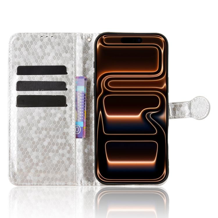 Funda de cuero con textura de lunares y panal para iPhone 17 Pro (plateada)