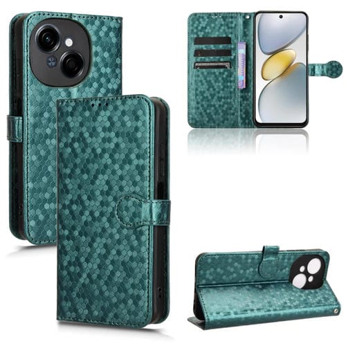 Funda de Cuero para Tecno Spark Go 2025 y Spark Go 1 con Textura de Puntos Panal (Verde)
