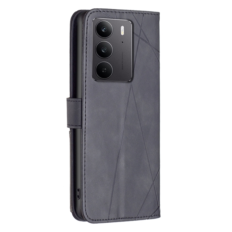 Funda de Cuero con Textura de Rombos y Hebilla Magnética para Realme C75 4G (Negro)