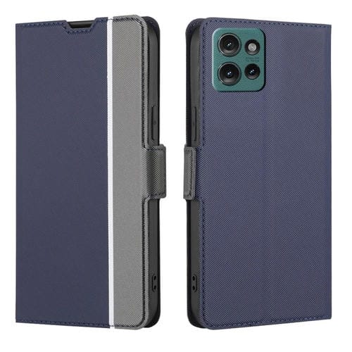Funda de Cuero con Textura de Sarga y Botones Laterales para Motorola Edge 50 5G (Azul)