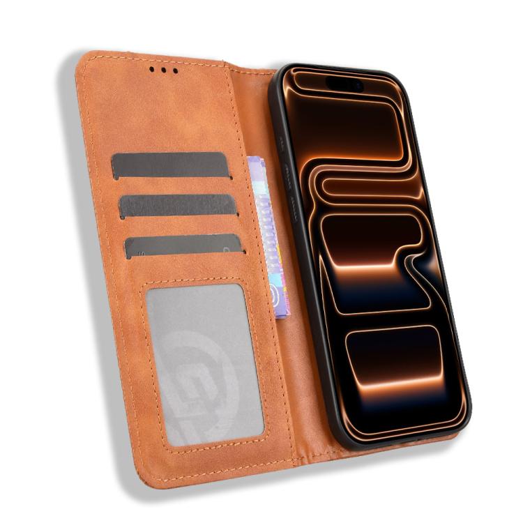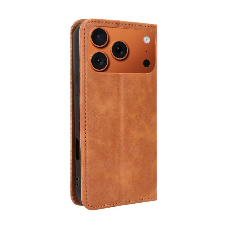 Funda de cuero con textura retro y hebilla magnética para iPhone 17 Pro (marrón)