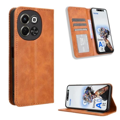 Funda de Cuero Retro con Hebilla Magnética para Tecno Pova 6 Neo 5G y Spark 30 5G (Marrón)
