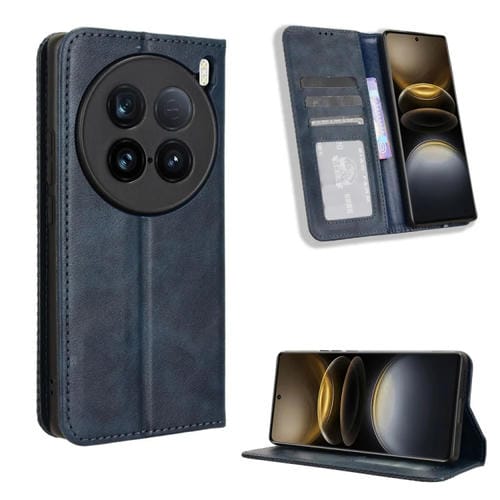 Funda de Cuero con Textura Retro y Hebilla Magnética para Vivo X100 Ultra 5G (Azul)