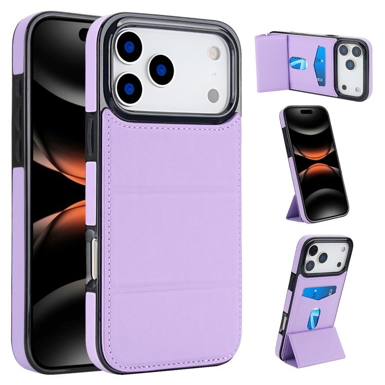 Funda de cuero con tres pliegues y ranura para tarjetas para iPhone 17 Pro Max (morado claro)